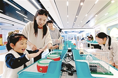 4月3日,孩子們在位于江蘇省徐州市云龍區(qū)的一家科學(xué)探索館,體驗(yàn)科普設(shè)備。蒯創(chuàng) 攝